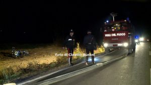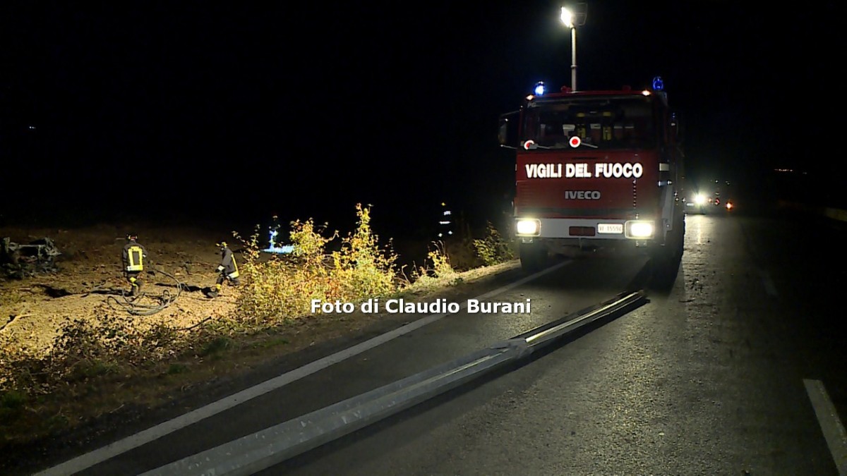 PACIANO – Incidente mortale nella notte. E’ accaduto nella Strada regionale R71 intorno alle ore 3, tra a Moiano di Città della Pieve e Paciano, sul Lago Trasimemo. Il conducente, da quanto appreso, avrebbe perso il controllo della sua auto, una Porsche Cabriolet, urtando prima contro gardrail e poi finendo fuori strada in mezzo a un campo. L’auto si è completamente incendiata e per il conducente non si sono state possibilità di salvezza. E’ morto carbonizzato. Si tratta di un uomo di Chianciano Terme. Ancora non si conoscono le generalità. Sul posto i Vigili del Fuoco di Città della Pieve, i carabinieri di Castiglione del Lago e Città della Pieve.