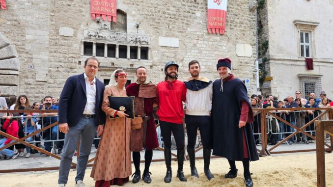 Leonardo Piciucchi trionfa – Nel pomeriggio di mercoledì 3 maggio, la pista allestita in piazza dei Priori a Narni ha ospitato l’edizione 2025 della Corsa all’Anello storica, manifestazione durante la quale ha trionfato il cavaliere Leonardo Piciucchi, rappresentante del Terziere Fraporta. L’evento ha richiamato appassionati e curiosi grazie alla cornice medievale del centro cittadino e alla spettacolarità delle prove che hanno impegnato i partecipanti dalla prima alla terza manche.