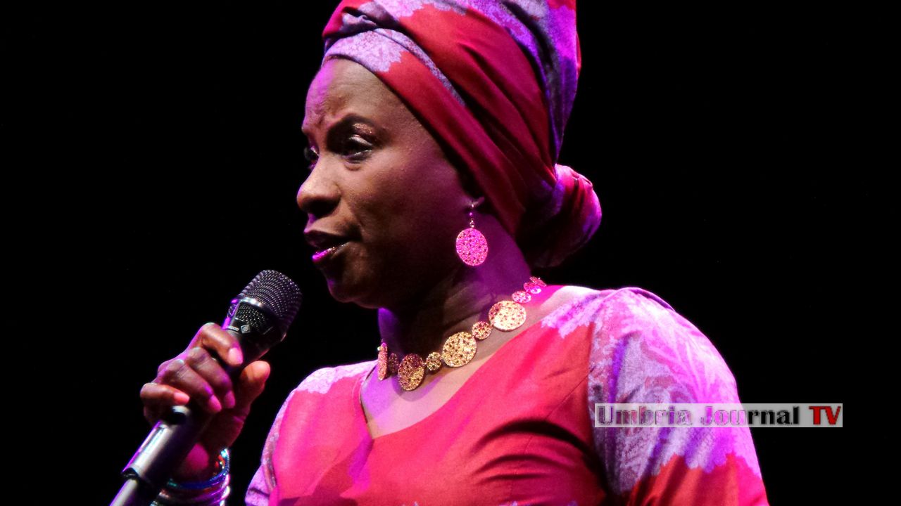 Esecuzione coinvolgente ed in grande stile per Angelique, che è stata definita da Time Magazine “Africa’s premier diva” e Vanity Fair le ha dedicato una monografia con contributi di Bono e Harry Belafonte. Ha vinto tre Grammy ed una infinita’ di riconoscimenti in tutto il mondo. Amnesty International le ha assegnato il premio Ambassador of conscience e l’Unicef l’ha nominata International Goodwill Ambassador. Secondo la BBC è una delle 50 icone dell’Africa. Angelique ha cantato nel 2003 in Sud Africa al concerto per la lotta all’AIDS con Peter Gabriel e Youssou N’Dour e nel 2015 ha cantato nell’apertura dell’Assemblea generale delle Nazioni Unite. Questo e molto altro ancora è Angelique Kidjo, che dal Benin in cui è nata ha saputo farsi voce, coscienza e anima dell’Africa con una musica in cui confluiscono i suoni del mondo. È una performer carismatica la cui importanza trascende il mero fatto artistico. E la performance di Perugia ha confermato la sua innata bravura.