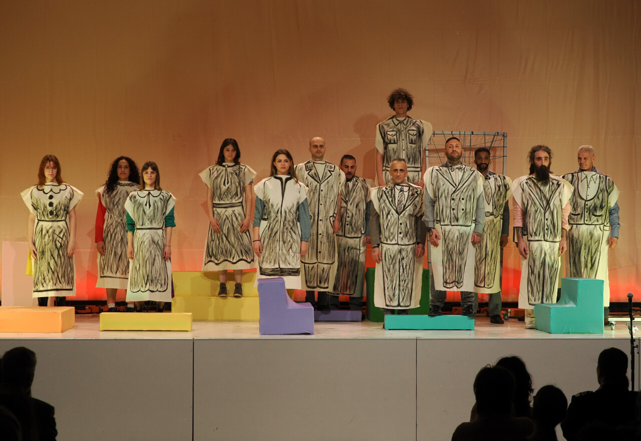 Ieri sera, giovedì 9 maggio 2024, la Casa Circondariale di Capanne a Perugia è stata testimone di un evento teatrale straordinario: “La popola del futuro ama”, diretto da Vittoria Corallo. Questo spettacolo, prodotto dal Teatro Stabile dell’Umbria con il sostegno della Fondazione Perugia, ha visto come protagonisti alcuni detenuti del carcere insieme a studenti del liceo artistico Di Betto e del Laboratorio Teatrale Universitario dell’Università degli Studi di Perugia.
