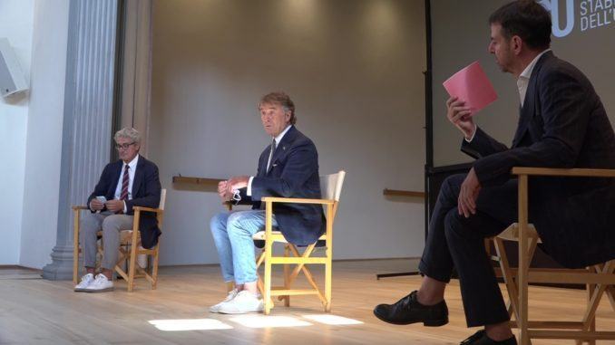 “In questa fase – ha affermato Brunello Cucinelli, in veste di presidente del Teatro Stabile dell’Umbria – affrontiamo la pandemia cercando di progettare giorno dopo giorno un tempo nuovo, pur sapendo che lo smart working è l’uccisione della creatività e che dobbiamo tornare presto ad avere un sano rapporto con il lavoro. Bisogna affrontare la pandemia convivendoci ogni giorno e avendo sempre meno paura, accettando tutto quello che il creato ci manda”, ha aggiunto.