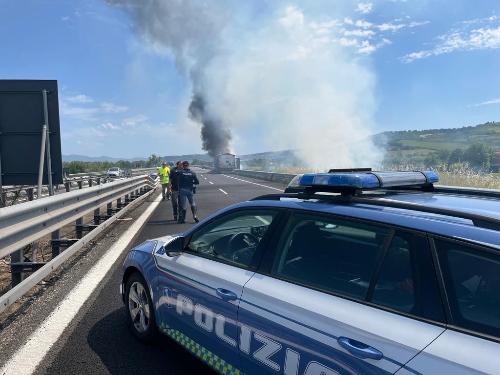 Autotreno in fiamme sull’autostrada tra Fabro ed Orvieto direzione Roma. Il conducente è sceso dal veicolo e non ha riportato lesioni. Il mezzo trasporta mais. Sul posto è presente la polizia stradale di Orvieto, al seguito di Stefano Spagnoli, che ha provveduto a mettere in sicurezza gli utenti in transito, bloccando il traffico in attesa dei vigili del fuoco che stanno arrivando sul posto.Poco dopo le ore 14:30, sull’ autostrada A1 Milano-Napoli, è stato temporaneamente chiuso il tratto compreso tra Fabro ed Orvieto a causa di un mezzo pesante che ha preso fuoco all’altezza del km 442. Sul luogo dell’evento sono intervenuti i Vigili del Fuoco, i soccorsi meccanici, le Pattuglie della Polizia Stradale ed il personale della Direzione 5° Tronco di Fiano di Autostrade per l’Italia.