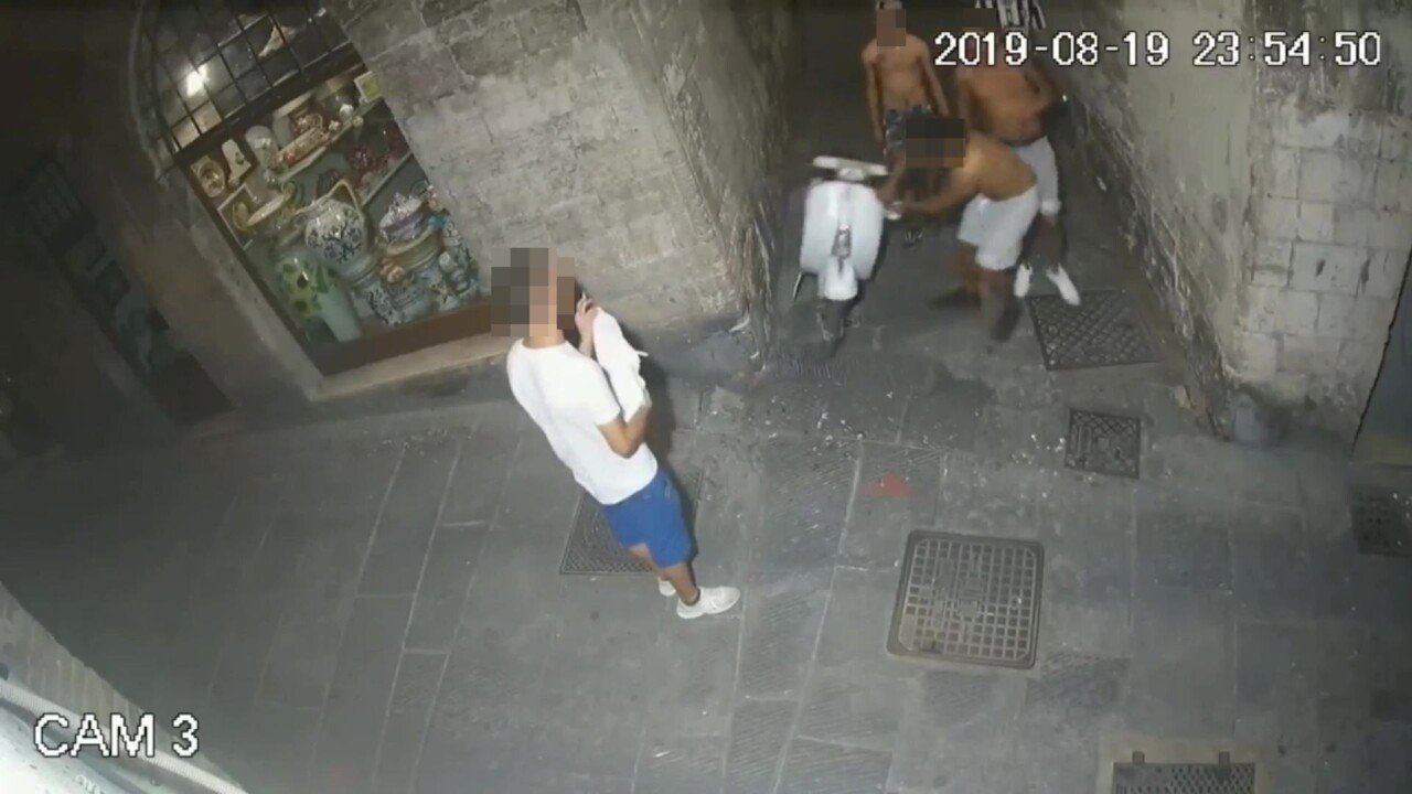 Il bilancio è pesantissimo: una decina di auto danneggiate, uno scooter sbattuto a terra, turisti in fuga davanti allo scempio. E’ stata un vera notte di follia quella accaduta in centro storico, tra lunedì e martedì, dalla mezzanotte e fino alle 2 circa. Il tutto è accaduto in piazza Alfani e via Ulisse Rocchi, ma anche di via Baldeschi, piazza Ansidei e Piazza Danti. Qualcuno ha girato un video che potrebbe aiutare i carabinieri a risalire agli autori. Tra le immagini si vede una sfida tra bande, uno che ribalta una vespa e un altro che indossa la maglia della Juve. Al vaglio dunque i video dei residenti per individuare i protagonisti della notte di follia.