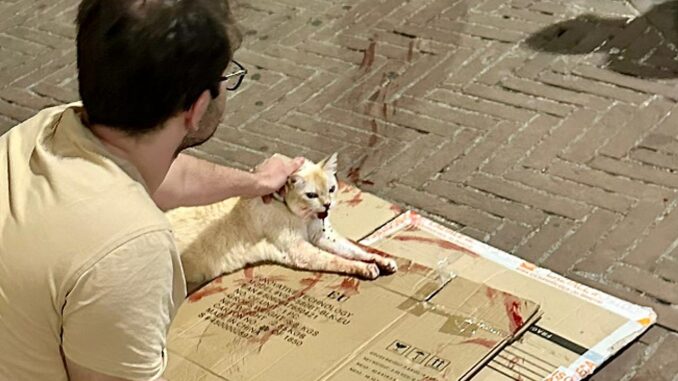 Gatto cade da un palazzo – Un gatto è caduto dalla finestra di un palazzo in via Oberdan, finendo esattamente alle spalle di una persona – la studentessa in medicina al sesto anno, Matilde Delogu – che stava passando sotto in quel momento. Ciò che è seguito è stato un impatto emotivo che ha unito i giovani testimoni in un’azione di soccorso straordinaria.