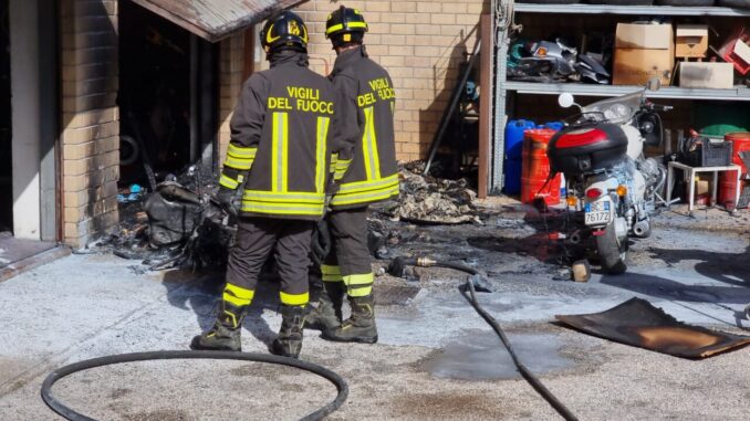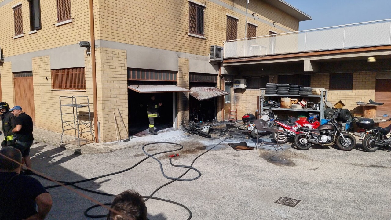 Una moto, di quelle costosissime, è andata completamente distrutta a causa di un incendio che si è sviluppato in una officina nella zona industriale di Bastia Umbra. Le fiamme, per cause ancora in corso di accertamento da parte dei Vigili del fuoco di Assisi, hanno aggredito l’interno e l’esterno del laboratorio meccanico. Una colonna di fumo nero si è alzata ed era visibile a diverse centinaia di metri. Da quanto si è appreso sul posto, un gruppo di operai di una azienda vicina – dotati di carrello antincendio – hanno avviato le prime procedure per contenere le fiamme.