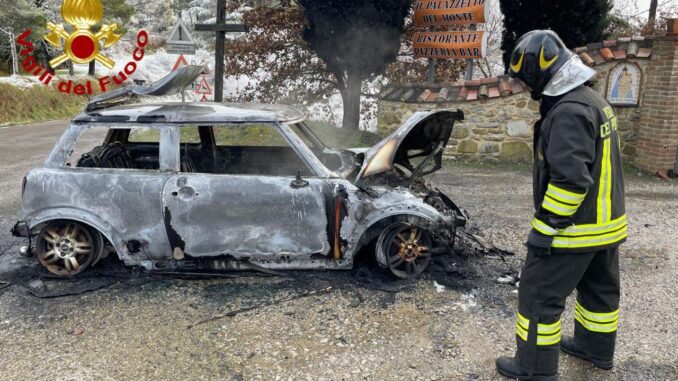 Questa mattina, alle 9:30, i Vigili del Fuoco di Città di Castello sono intervenuti sulla SP 103, nei pressi del bivio per Monte Santa Maria Tiberina, per spegnere un incendio che ha coinvolto un’autovettura. L’intervento ha permesso di domare rapidamente le fiamme, evitando ulteriori danni o pericoli per gli altri veicoli in transito.
