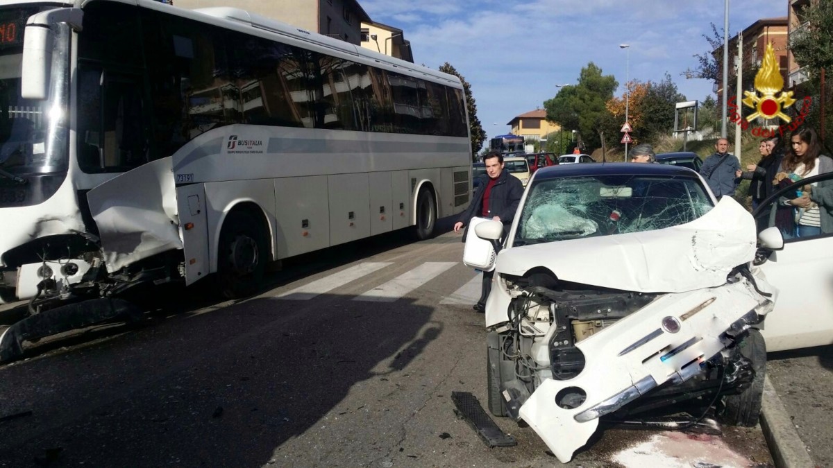 Incidente stradale a Perugia, scontro tra autobus e Fiat 500, un ferito