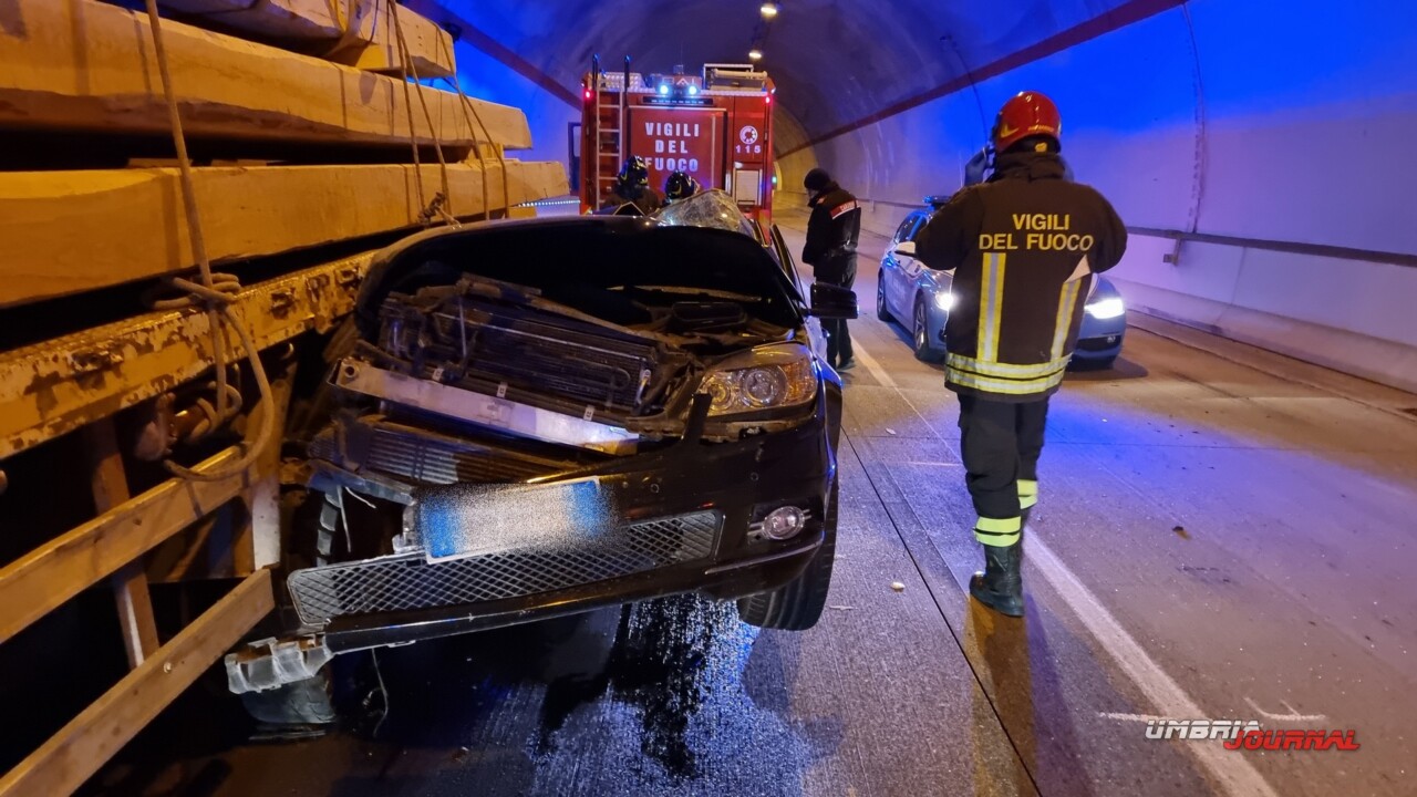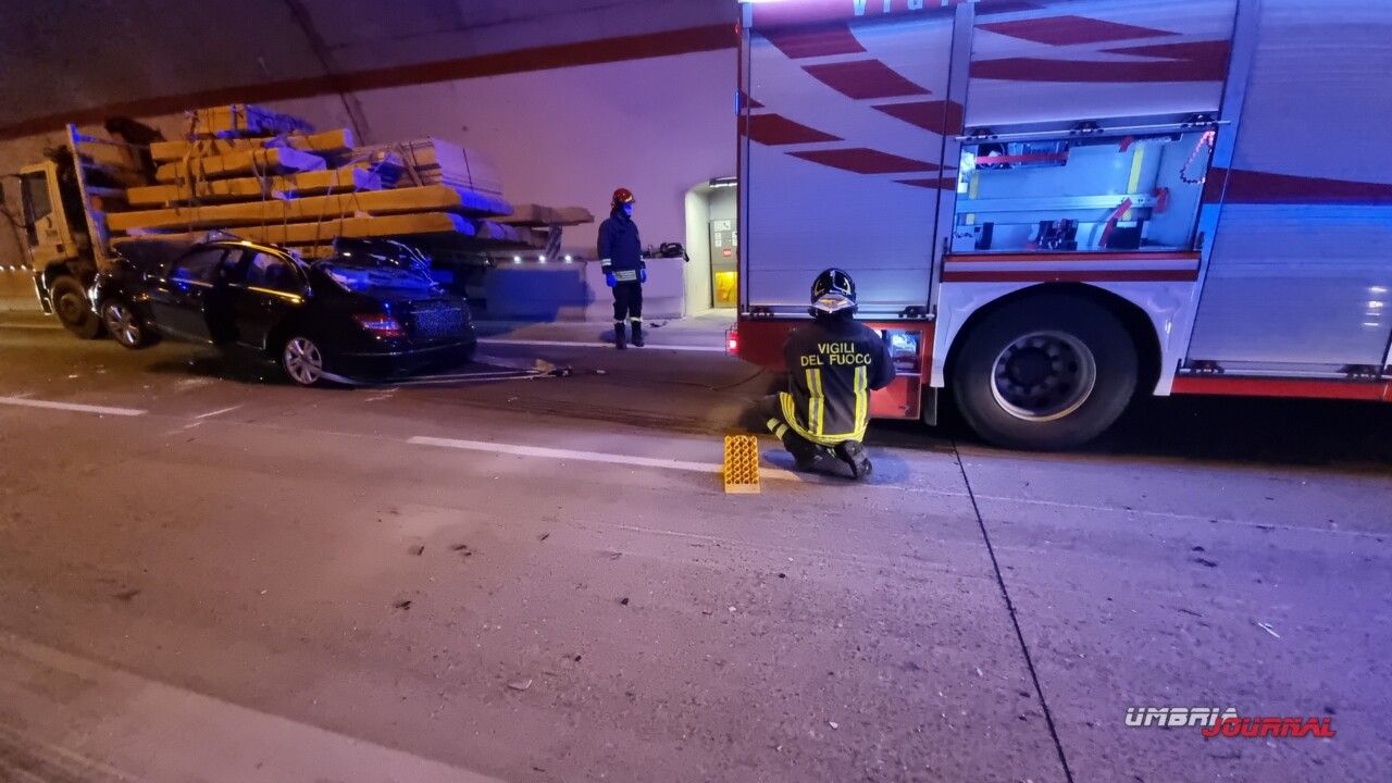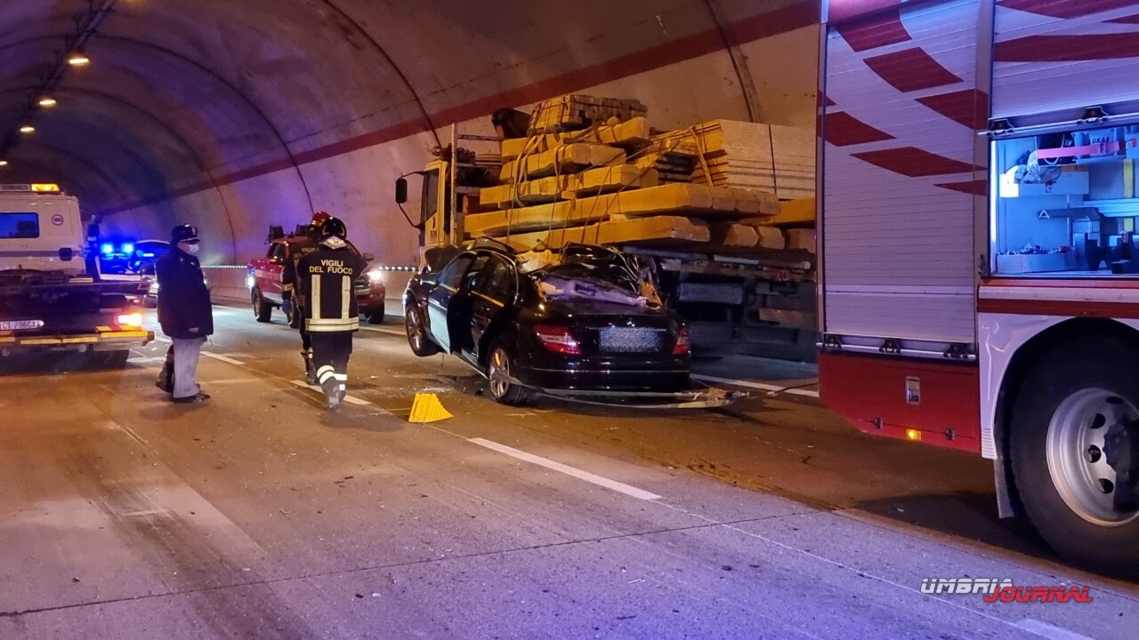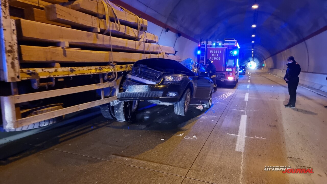 Un uomo è morto in seguito a un incidente stradale avvenuto nella mattinata di mercoledì, sulla strada statale 77var “della Val di Chienti”. E’ successo poco prima delle ore 11, all’interno della galleria. Una Mercedes Classe C, per cause in corso di accertamento, è finita sotto un camion che trasportava travi in legno. Il conducente della vettura è morto.
