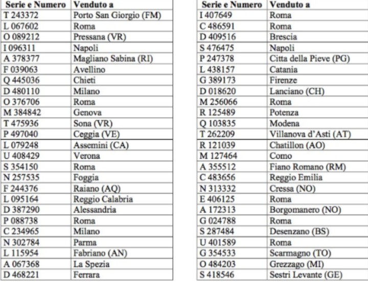 Ecco le serie e i numeri dei biglietti estratti di terza categoria del valore di 25mila euro ciascuno:
