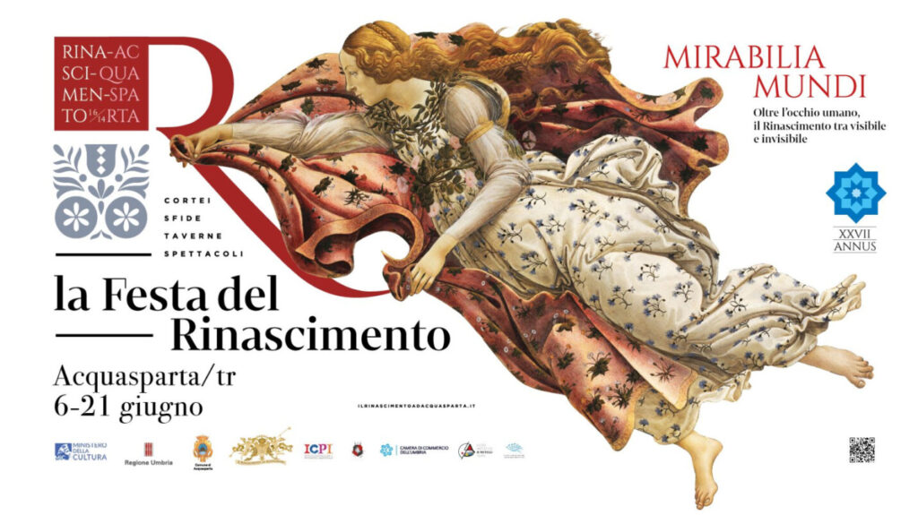 Il tema portante “Oltre l’occhio umano, il Rinascimento tra visibile e invisibile”, letto anche alla luce dell’attualità legata ai recenti sviluppi dell’intelligenza artificiale, troverà poi la sua declinazione in una serie di eventi di approfondimento culturale e di spettacoli serali, distribuiti nell’arco dei quindici giorni della Festa, come ad esempio: la lectio magistralis del teologo Vito Mancuso dal titolo “Il senso della vita nell’epoca dell’intelligenza artificiale” in programma l’8 giugno e la lectio magistralis sul tema “Umanesimo e Intelligenza Artificiale” a cura del Magnifico Rettore dell’Università degli Studi di Perugia, Massimiliano Marianelli, prevista il 16 giugno; il “Vexilla ad caelum”, 2a rassegna degli sbandieratori d’Italia che andrà in scena il 7 giugno in Piazza Cesi, in collaborazione con LIS – Lega Italiana Sbandieratori; il grande spettacolo teatrale in piazza, previsto per il 19 giugno, dal titolo “La Notte delle Streghe” a cura della Compagnia Lux Arcana, con giochi di fuoco e acrobazie strabilianti.