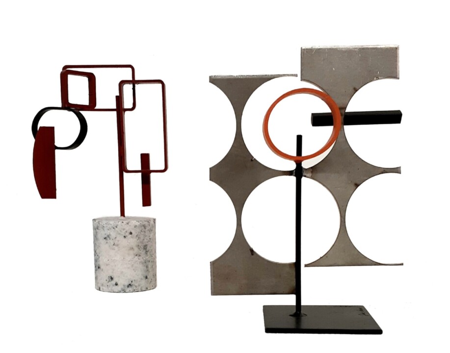 In mostra una selezione di lavori recenti eseguiti tra il 2018 e il 2021: 18 sculture prevalentemente in ferro dipinto e acciaio, 6 rilievi a tecnica mista, opere su carta ed altre cartelle grafiche.