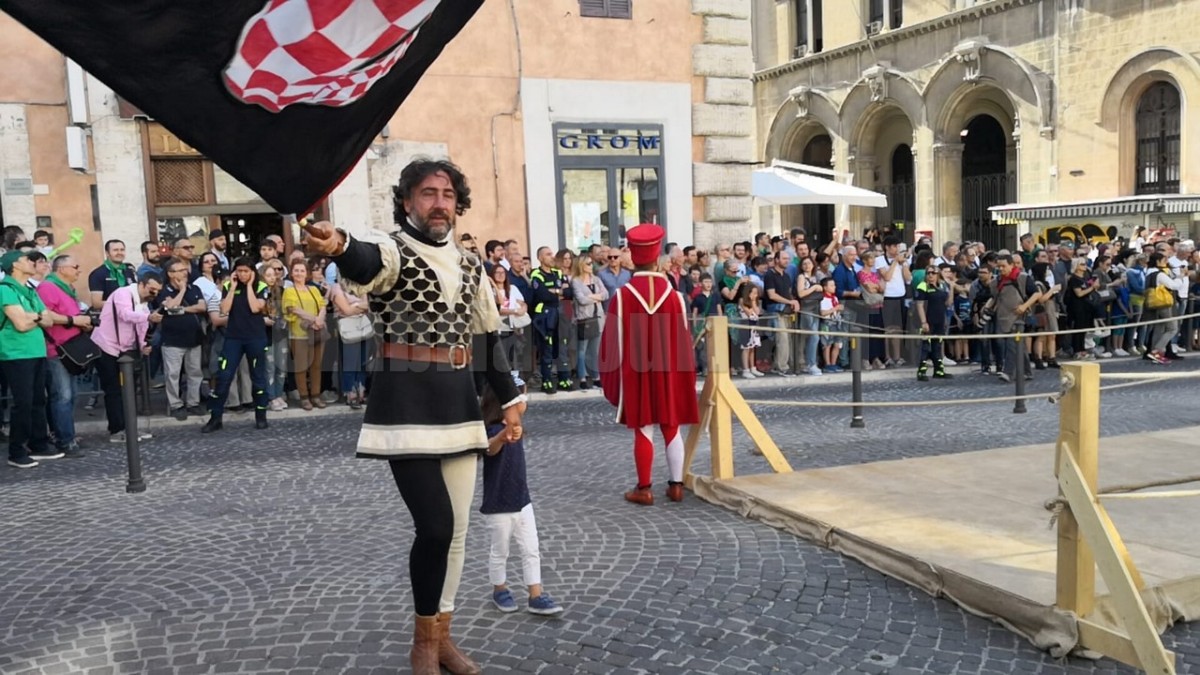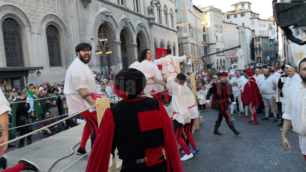Programma di oggi 10 giugno. Dalle 10.30 alle 13, in Piazza Matteotti, ancora uno spazio dedicato ai bambini, con giostra medievale, giullarata e contastoria a cura di Tieffeu. Alle 11.30, Porta Eburnea, nella chiesa di Santo Spirito, in via del Parione, ha organizzato la santa messa dei rionali, con la partecipazione di figuranti e tamburini. Ci si avvia così nel cuore di “Perugia 1416”, anche quest’anno affidata a Rodolfo Mantovani, coordinatore artistico della “tre giorni”: alle 16, in Piazza IV Novembre, esibizione degli Sbandieratori di Assisi, seguita, dalla partenza del corteo della Reggenza comunale da Palazzo dei Priori verso l’Arco Etrusco per incontrare il drappello armato di Braccio; alle 16.30, inizieranno a muoversi i cortei dai cinque Rioni verso Piazza Italia, così il corteo di Braccio scortato dagli armati della Compagnia del Grifoncello e della Militia Bartholomei, che dal Cassero di Porta Sant’Angelo, proseguirà lungo Corso Garibaldi (previsto il picchetto d’onore davanti alla caserma Fortebracci Comando Militare Esercito Umbria, Piazza Lupattelli, fino all’Arco Etrusco, dove avverrà l’incontro tra Braccio e la Reggenza comunale. Da qui, i due cortei proseguiranno lungo via Cesare Battisti, via Maestà delle Volte, Piazza IV Novembre; si sistemeranno sulla scalinata della Vaccara di Palazzo dei Priori, dove alle 17.30 avverrà la consegna delle chiavi della Città a Braccio e il rito degli omaggi dai Rioni; alle 17.30, da Piazza della Repubblica, muoverà il corteo storico, accompagnato dalle delegazioni ospiti; alle 19.30, l’attesa “Corsa del drappo” lungo Corso Vannucci, la terza sfida per aggiudicarsi il Palio della terza edizione, disegnato da Filippo Moroni dell’Accademia di Belle Arti “Pietro Vannucci” di Perugia, su cui peserà il voto che la giuria darà ad ogni rione per il corteo.