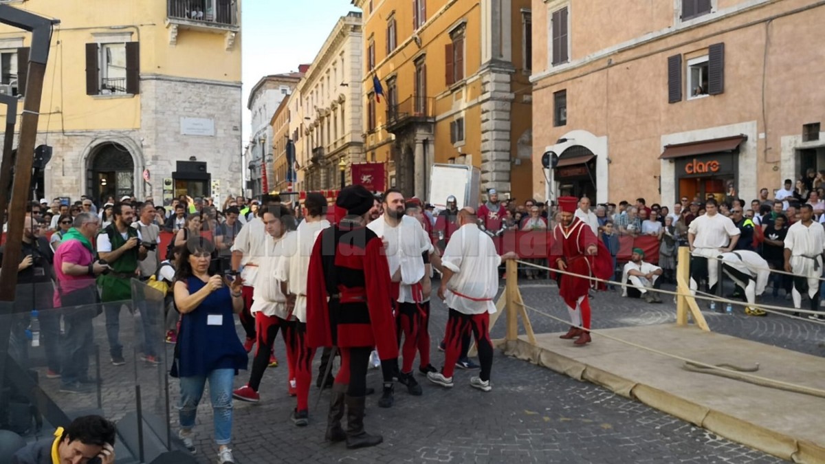 Classifica generale. Dopo i primi due giochi (Tiro del giavellotto e Mossa alla Torre), al primo posto si attesta Sant’Angelo con 40 punti, al secondo Porta Eburnea con 25, al terzo San Pietro con 23, al quarto Porta Sole con 22, al quinto Porta Santa Susanna con 20 punti.