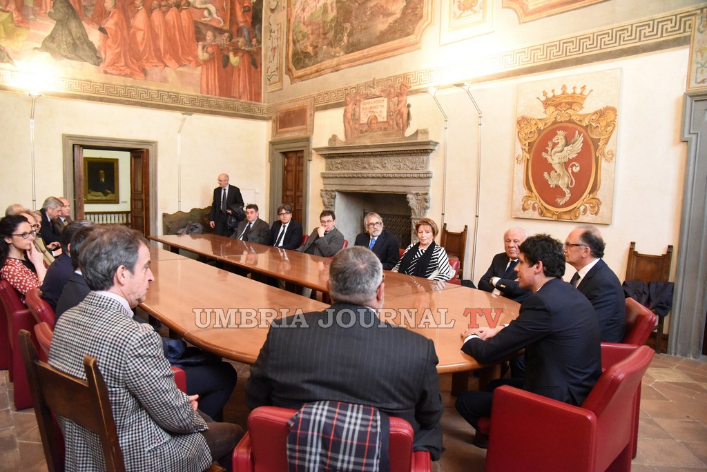 Dopo aver partecipato presso l’Università alla cerimonia d’inaugurazione dell’anno accademico, il presidente Tajani ha voluto fortemente portare il saluto dell’Istituzione europea al Comune di Perugia, intrattenendosi con assessori e consiglieri in sala Rossa. Ad accogliere Tajani è stato il sindaco Andrea Romizi che ha voluto ringraziare il Presidente per aver dato lustro, con la sua presenza, alla città di Perugia. Nel contempo Romizi ha ringraziato Tajani per il grande impegno profuso presso le Istituzioni europee nell’interesse dell’Italia. Durante l’incontro, molto cordiale, Tajani ha risposto alle domande e sollecitazioni arrivate dai consiglieri Perari, Mencaroni e Camicia e dal vice sindaco Barelli, illustrando i termini della situazione europea.