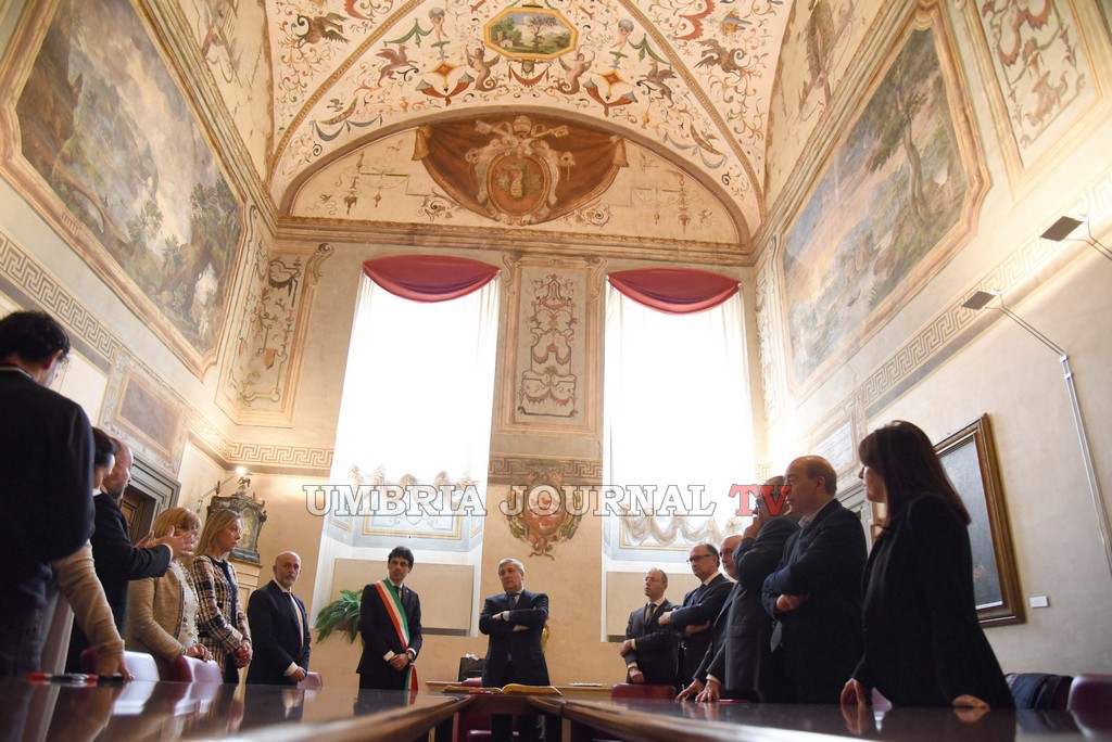 Il presidente del Parlamento Europeo Tajani visita il comune di Perugia PERUGIA – Il Presidente del Parlamento Europeo Antonio Tajani, in carica dallo scorso 17 gennaio dopo il mandato di Martin Schulz, ha incontrato questa mattina alcuni rappresentanti della giunta comunale e del consiglio comunale. Presenti tra gli altri il sindaco Andrea Romizi, il vice sindaco Urbano Barelli, gli assessori Cicchi, Bertinelli, Fioroni e Casaioli, il presidente Varasano, i consiglieri Pittola, Mignini, Camicia, Tracchegiani, Mencaroni, Perari e Pietrelli.