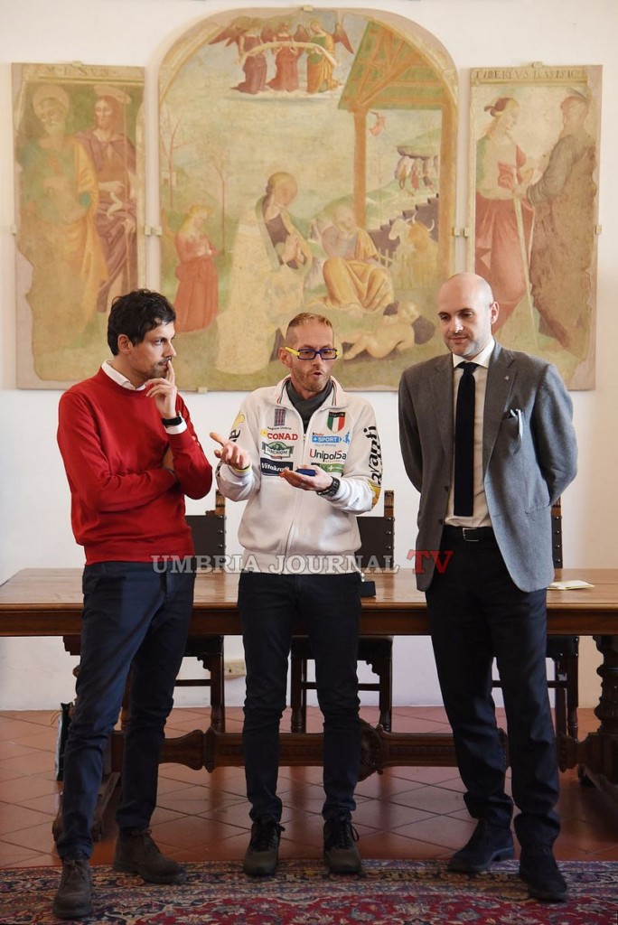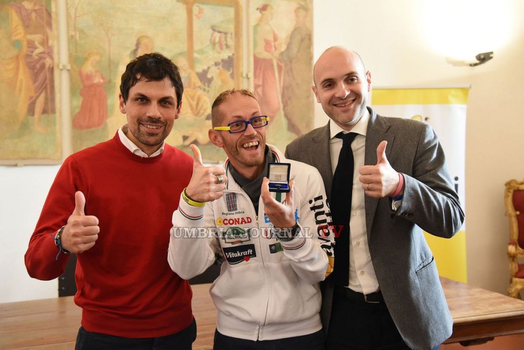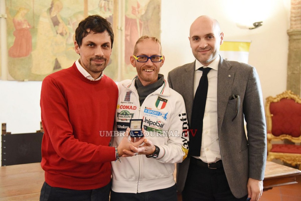 Sindaco Romizi consegna baiocco d’Oro a Leonardo Cenci. Reduce dalla maratona di New York, Leonardo Cenci è stato ricevuto questa mattina a Palazzo dei Priori dal Sindaco Andrea Romizi e dall’Assessore allo Sport Emanuele Prisco, che hanno voluto consegnargli il Baiocco d’Oro quale ulteriore attestato di stima e di gratitudine.