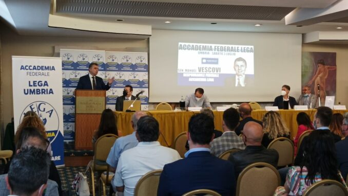 Si conclude con un ultimo appuntamento in presenza l’Accademia Federale Lega Umbria, la scuola di formazione politica voluta da Matteo Salvini. I referenti locali dell’Accademia Luigi Pecchioli, il responsabile Accademia Federale Lega Umbria, Valter Biscotti, responsabile corsi e Marco Grosso, responsabile organizzativo, hanno ricordato come “nonostante le restrizioni causate dal Covid” ci sia stata “ampia partecipazione e un’attenzione particolare verso i temi toccati nel corso di questa seconda edizione. Un risultato importante per l’Accademia che si pone l’obiettivo di formare i futuri dirigenti e amministratori umbri della Lega”.