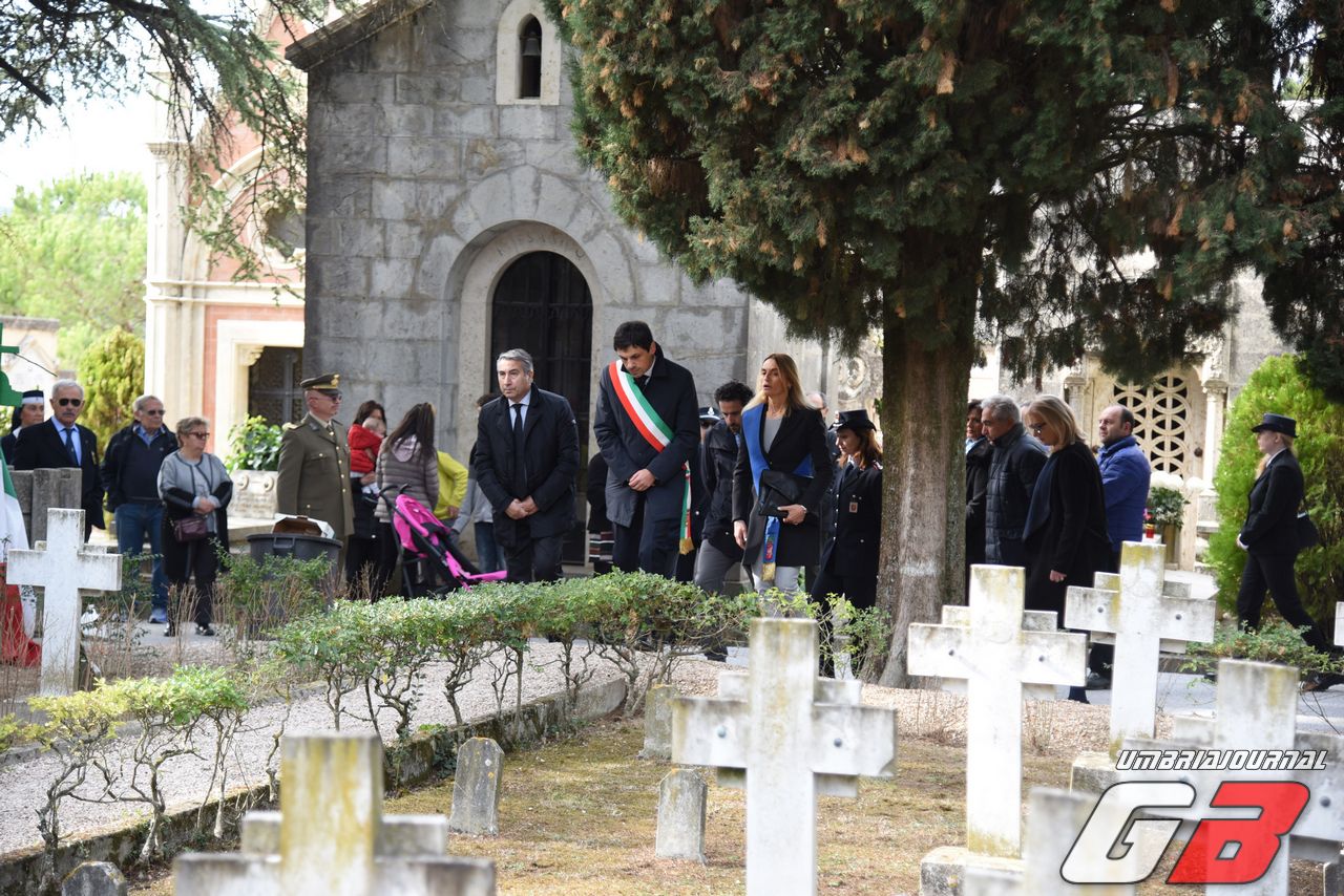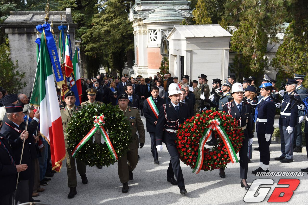 La cerimonia si è aperta con la cerimonia di deposizione delle corone da parte delle autorità al monumento ai Caduti di tutte le guerre, quindi è proseguita con il consueto omaggio all’ossaia comune, alla tomba del cecoslovacco Matuska, alle tombe dei patrioti caduti nella guerra di liberazione, a quelle delle personalità politiche perugine e dei cittadini iscritti all’Albo d’Oro del Comune, tra i quali anche Vincenza Losito Baldasserini, Raffaele Rossi e Tullio Seppilli. Al termine, è stata celebrata la Santa Messa presso lo storico altarino da campo, concesso dalla sezione di Perugia dell’Associazione mutilati ed invalidi di guerra.