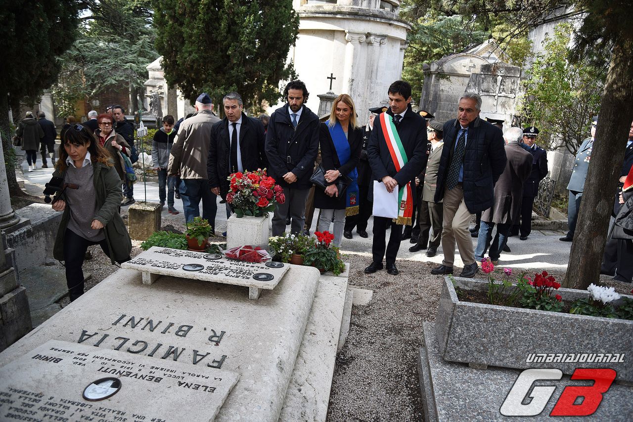 PERUGIA – In occasione della commemorazione dei defunti, come ogni 2 novembre, il sindaco Andrea Romizi, accompagnato dalle altre Autorità civili e militari, ha reso onore ai caduti, presso il cimitero civico monumentale.
