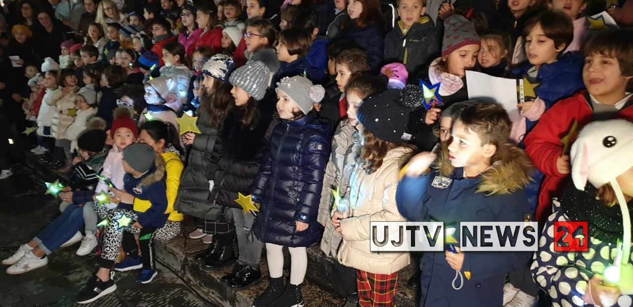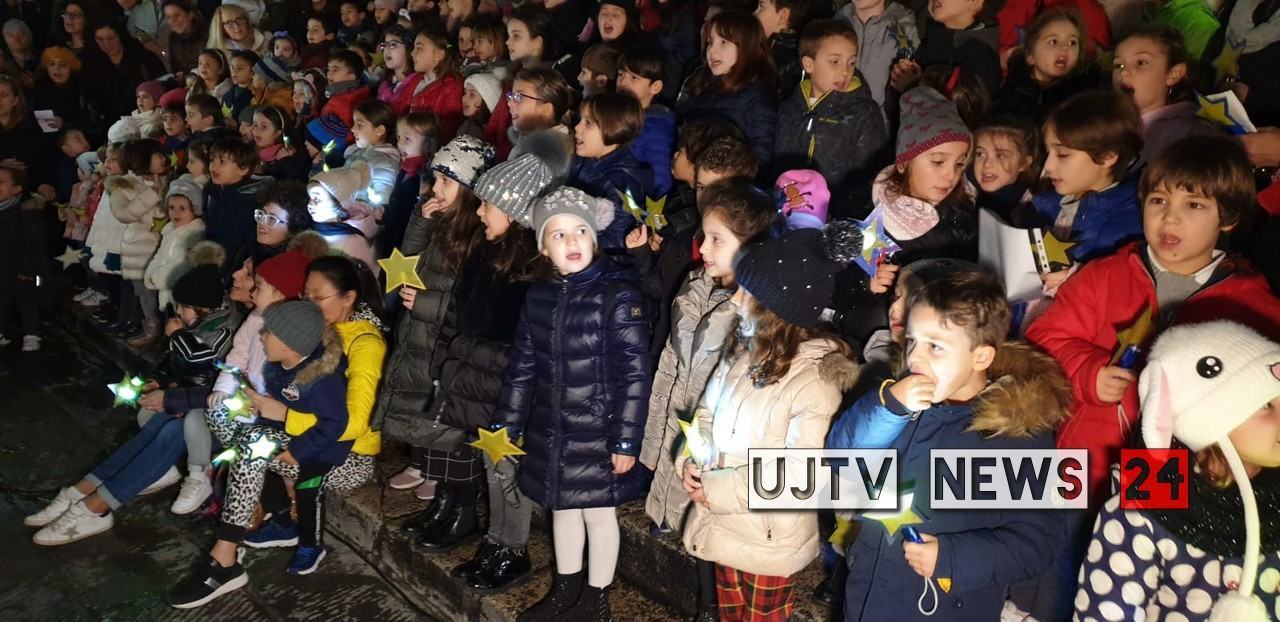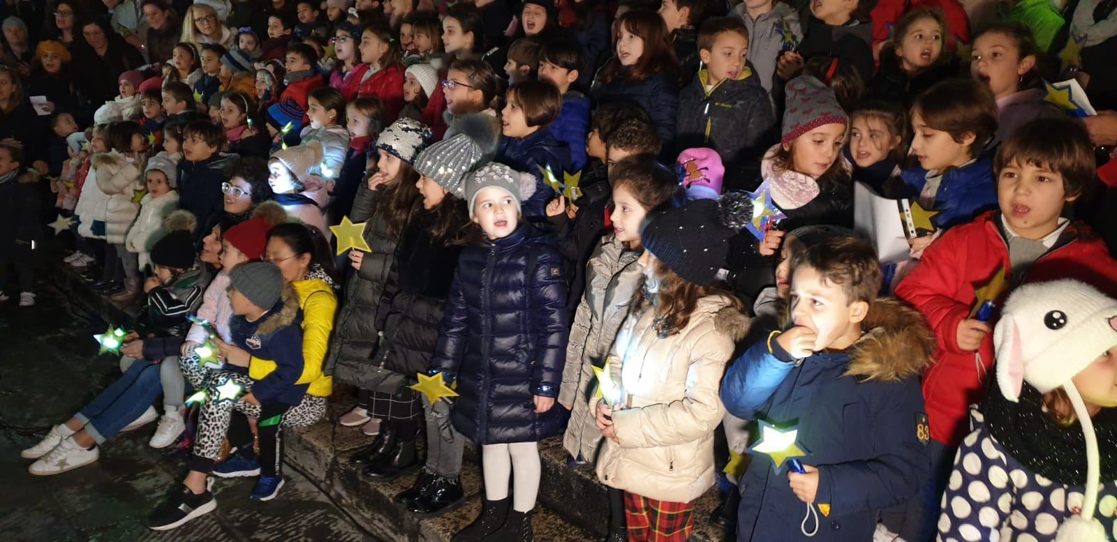 Al termine dell’esibizione del coro, tutti i bambini hanno acceso delle stelline luminose, dando il là per l’accensione del grande albero di piazza IV Novembre e degli igloo posizionati in varie vie del centro.