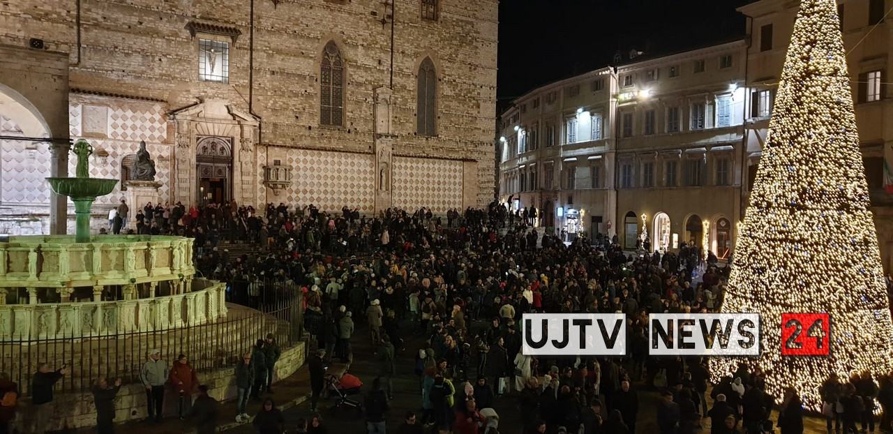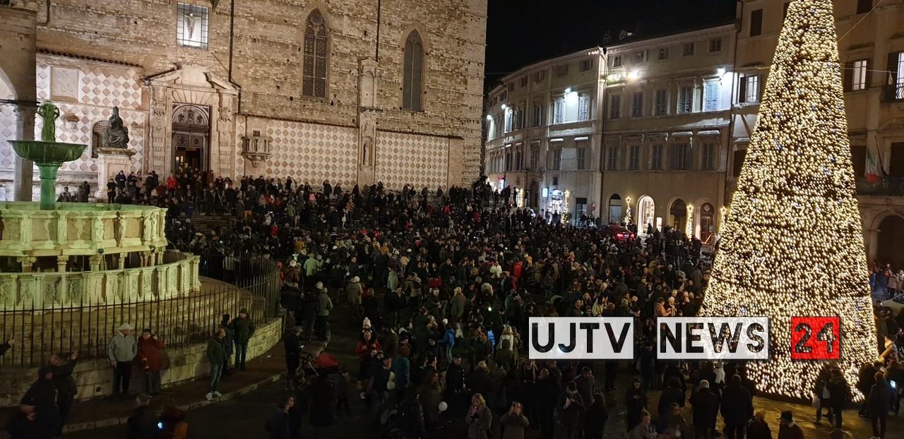 Una piazza IV Novembre gremita ha fatto da sfondo, nel pomeriggio di sabato 7 dicembre, all’inaugurazione del Natale di Perugia 2019. Puntuale, poco prima delle 17, il trio jazz degli allievi del Conservatorio Morlacchi di Perugia ha dato il via alle esibizioni, in attesa della Fanfara regionale dei bersaglieri Renato Salucci, mentre i 466 bambini e i genitori del coro del Distretto Montessori -coro nato per celebrare i 70 anni di Maria Montessori a Perugia- si posizionavano sul sagrato del Duomo.