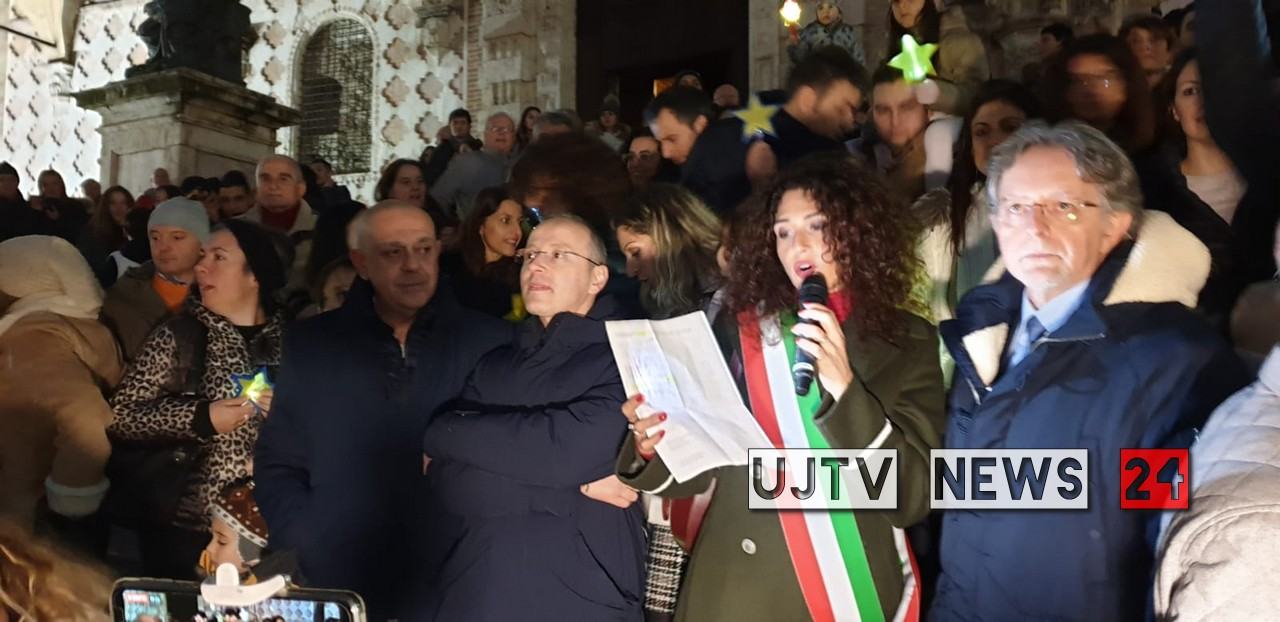 A dare il benvenuto dell’amministrazione è stata l’assessore al Commercio e Sport Clara Pastorelli, affiancata dall’assessore alla Cultura Leonardo Varasano e l’assessore alla Mobilità Luca Merli.  “Questo Natale è un Natale corale -ha ribadito Pastorelli- che ha visto l’impegno e lo sforzo di tanti soggetti, dall’amministrazione, al consorzio, i commercianti, le associazioni, i rioni, tanti cittadini, e i risultati si vedono. L’unione fa la forza, ma fa anche la differenza.” Pastorelli ha quindi citato Dante e la Divina Commedia, invitando tutti a “riveder le stelle” come segno di speranza, alzando lo sguardo verso l’alto e verso il futuro.