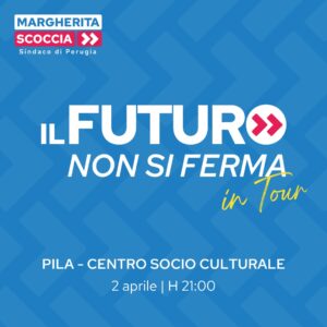 Con “Il futuro non si ferma in tour”, Margherita Scoccia si impegna a costruire un futuro migliore per Perugia, ascoltando le voci dei suoi cittadini e condividendo con loro i suoi progetti. Un viaggio che inizia da Pila, ma che toccherà tutti gli angoli della città.