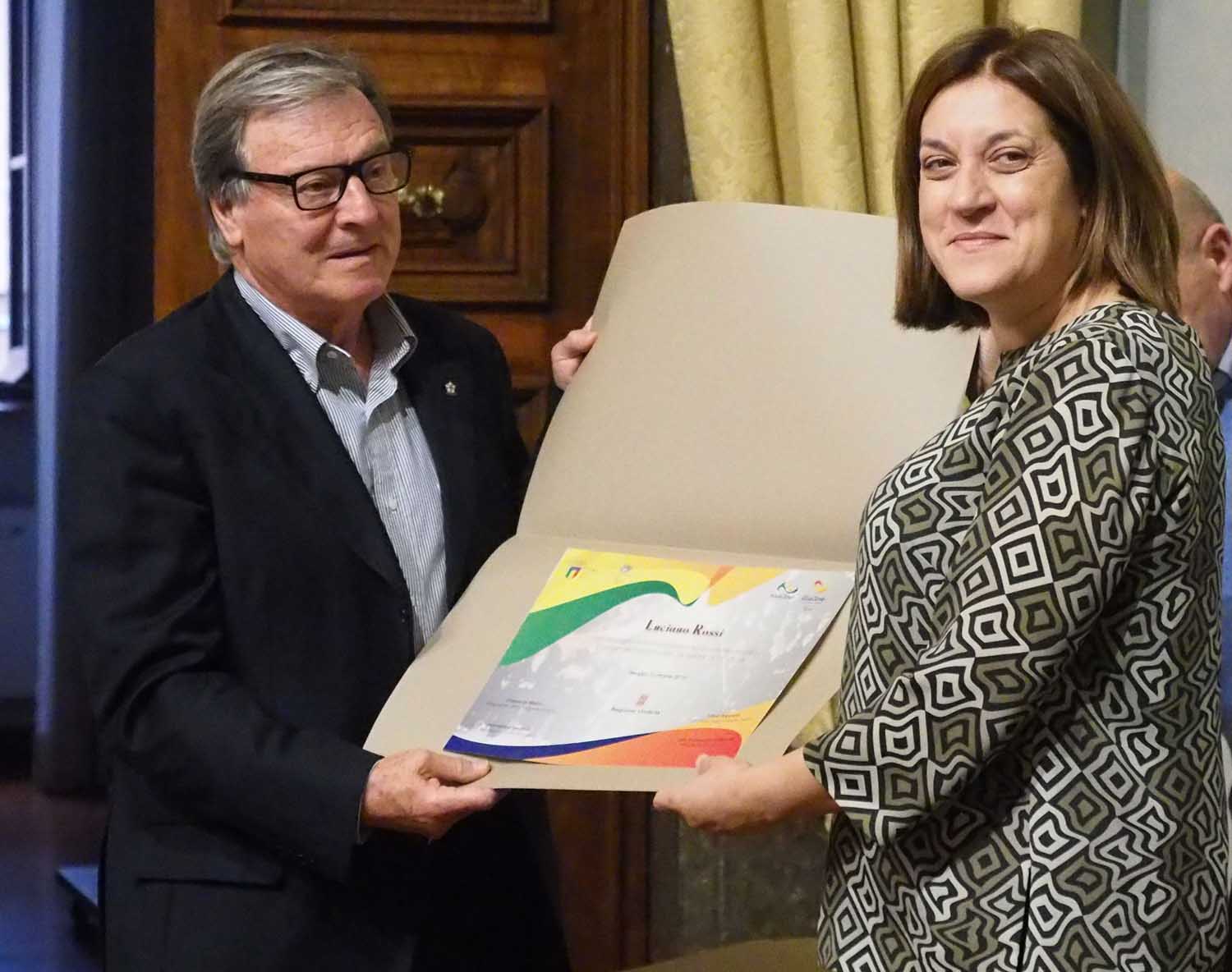 “In questa occasione – ha affermato la presidente Marini – abbiamo voluto istituire un simbolico titolo di Ambasciatore dello Sport Umbro che conferiamo ai nostri rappresentanti. E lo facciamo con molta soddisfazione perché è un titolo che ha un suo valore morale, visto il messaggio che si trasmette ai giovani ed ai giovanissimi, ed è anche una richiesta di “aiuto” per promuovere al meglio la nostra Regione ed il nostro territorio in occasione degli eventi nazionali ed internazionali. Siamo orgogliosi di voi – ha sottolineato la presidente – ed i vostri risultati sicuramente ci aiutano a portare avanti una giusta politica dello sport a favore dei più giovani che si può realizzare attraverso la stretta collaborazione tra istituzioni. Così come è avvenuto quando abbiamo deciso insieme di introdurre l’educazione e l’attività motoria nelle scuole primarie della nostra Regione”.