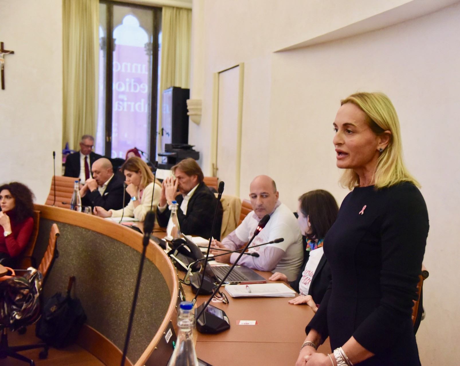 Nel corso dell’assemblea, i consiglieri comunali di Perugia hanno indossato la maglia rosa del progetto Pink is Good, a sostegno della ricerca contro i tumori femminili della Fondazione Umberto Veronesi. L’iniziativa, che ha visto presenti nella sede del consiglio, a Palazzo dei Priori, le sei Pink Ambassador 2019 del running team perugino, è stata promossa dalla consigliera Erika Borghesi con il supporto dell’Ufficio di Presidenza del Consiglio comunale, e ha visto l’adesione di tutti i consiglieri, che hanno così voluto testimoniare la necessità di sostenere la ricerca scientifica e l’importanza della prevenzione, nella lotta alle patologie oncologiche.