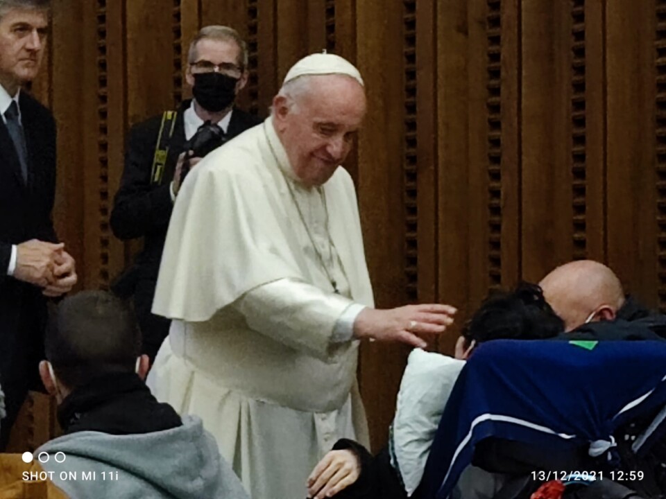 A Roma nell’Aula Paolo VI si sono ritrovati insieme una rappresentanza dei ragazzi assistiti dal Serafico, i loro genitori, dipendenti, volontari, sostenitori, i Padri Rogazionisti, le suore Elisabettine Bigie, monsignor Domenico Sorrentino, vescovo di Assisi, e i francescani del Sacro Convento. Ad accogliere il Pontefice un lungo applauso e il saluto della presidente del Serafico Francesca Di Maolo.