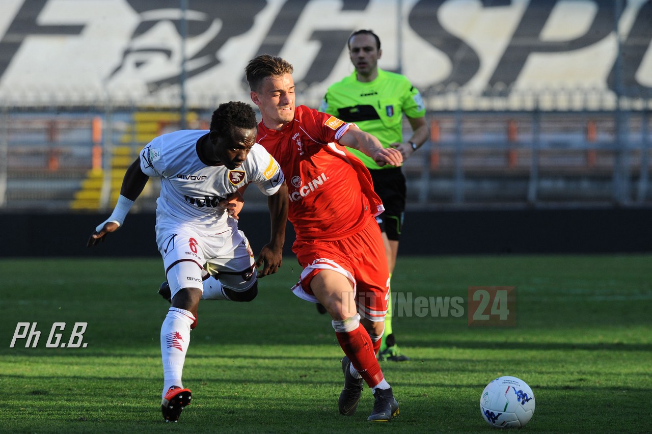 Salernitana: Micai, Pucino (30’ st Orlando), Migliorini, Mantovani, Casasola, Di Tacchio, Minala (1’ st Odjer), Lopez, A. Anderson, Jallow, Djuric (18’ st Calaiò). All. Angelo Gregucci