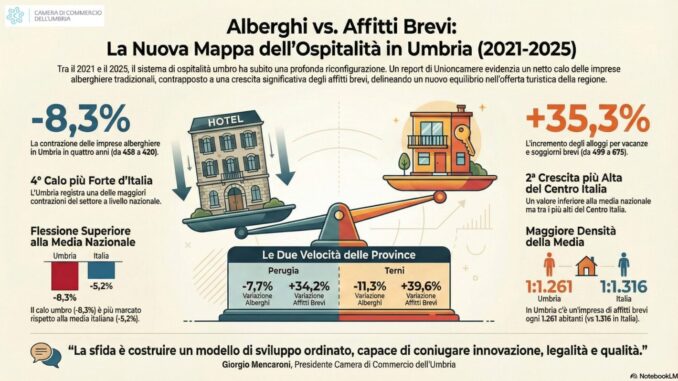 Cambia il turismo regionale: ospitalità diffusa in crescita L’assetto del turismo umbro sta cambiando in modo progressivo ma strutturale. A certificarlo sono i dati del [Leggi ancora]