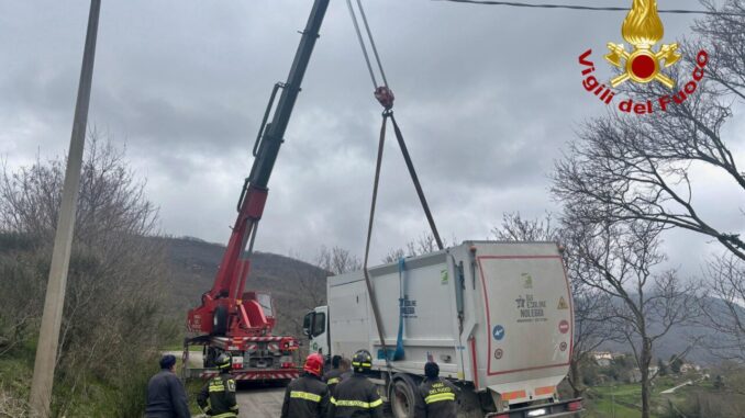 Camion fuori strada a Nocera Umbra, recuperato dai Vigili del Fuoco