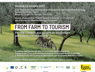 L’Umbria, con il suo patrimonio di ricerca e di esperienze, in attesa dell’uscita dei decreti attuativi dell’oleoturismo, si candida a diventare un vero e proprio laboratorio per il turismo dell’olio in Italia. Questo l’assunto dal quale prenderà le mosse, venerdì 22 ottobre, alle ore 15.00, presso l’Aula Magna del Dipartimento di Scienze Agrarie dell’Università di Perugia, l’evento di apertura della XXIVesima edizione di “Frantoi Aperti in Umbria” alla presenza del Ministro delle politiche agricole, alimentari e forestali On. Stefano Patuanelli.